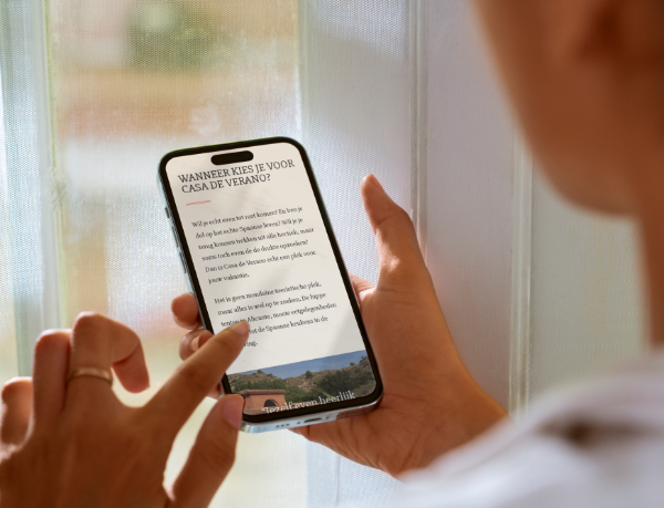 Voor Casa de Verano, een sfeervol vakantiehuis in het Spaanse Busot, hebben we een gebruiksvriendelijke website ontworpen en gebouwd die de serene sfeer en unieke kenmerken van de accommodatie weerspiegelt. Daarnaast hebben we bijpassende visitekaartjes ontworpen om de offline promotie te ondersteunen.
